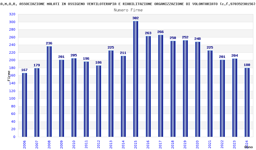 | Anno | Firme | Importi | Media | Naz. | Reg. | Prov. | Comu. |