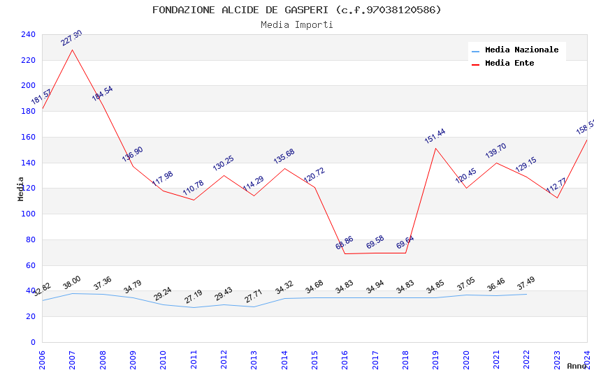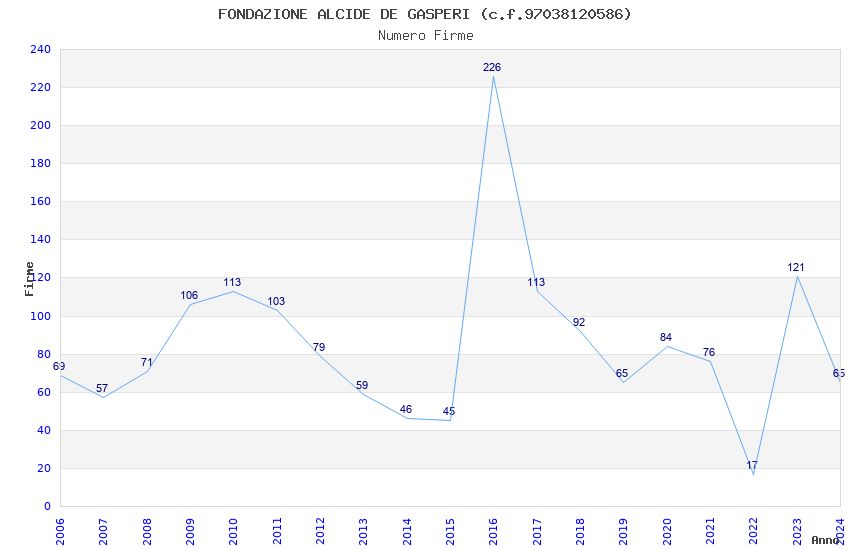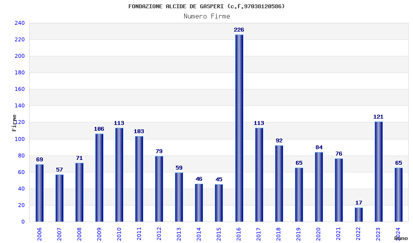 | Anno | Firme | Importi | Media | Naz. | Reg. | Prov. | Comu. |