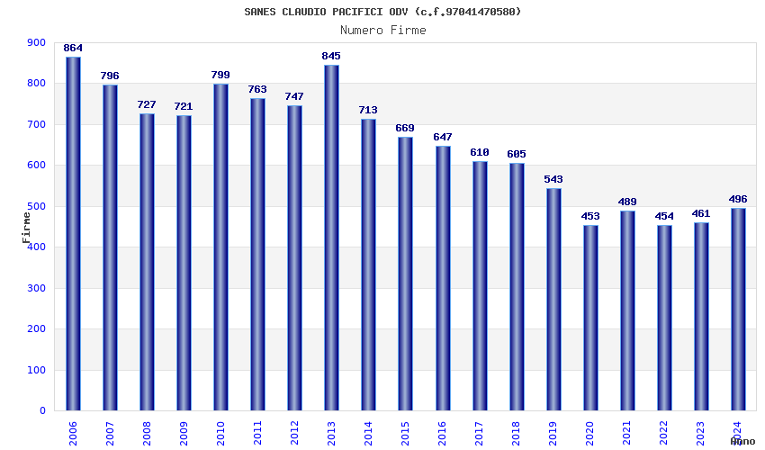 | Anno | Firme | Importi | Media | Naz. | Reg. | Prov. | Comu. |