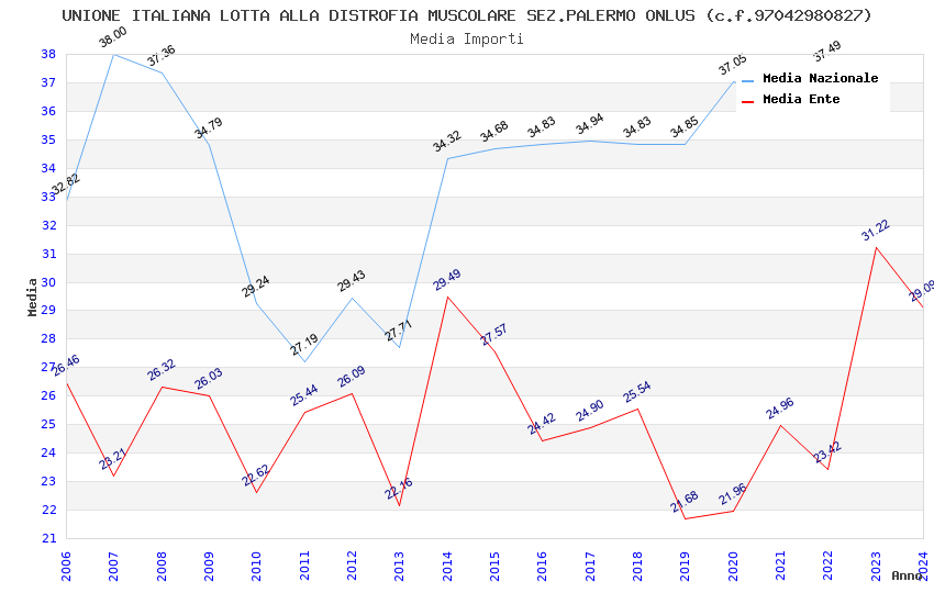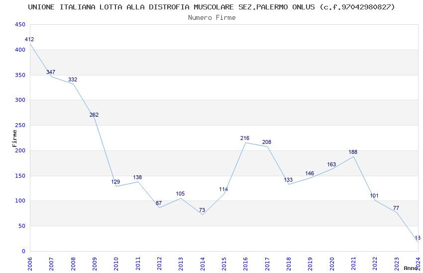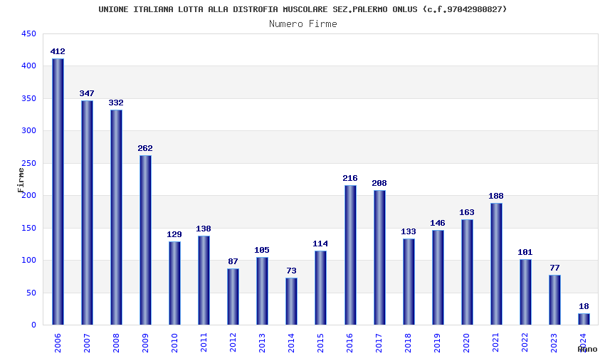 | Anno | Firme | Importi | Media | Naz. | Reg. | Prov. | Comu. |