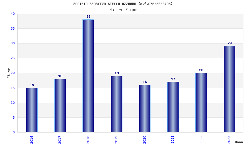 | Anno | Firme | Importi | Media | Naz. | Reg. | Prov. | Comu. |