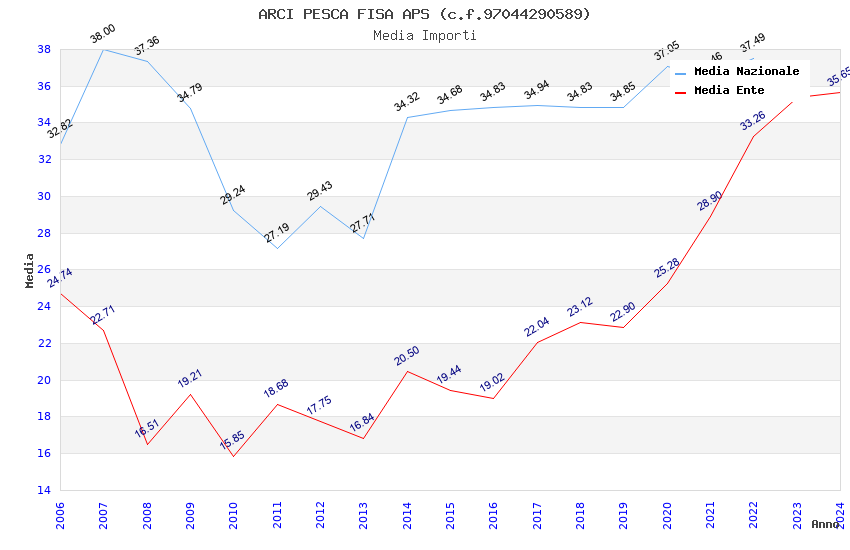 | Anno | Firme | Importi | Media | Naz. | Reg. | Prov. | Comu. |