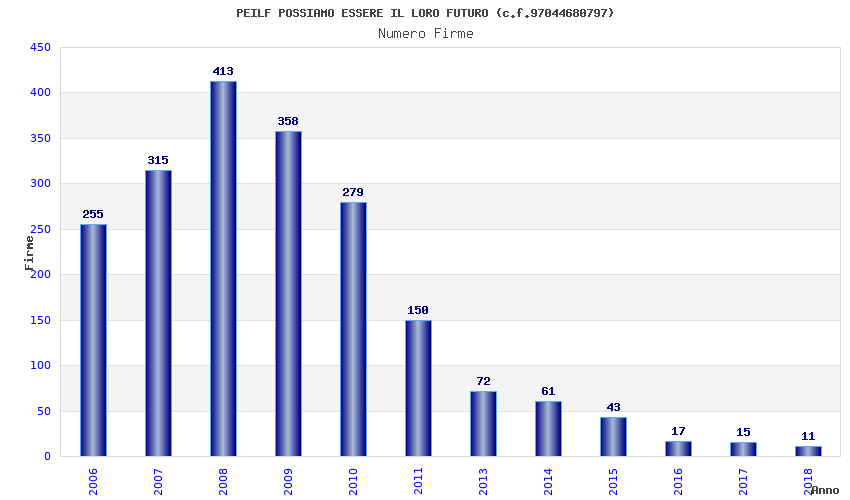 | Anno | Firme | Importi | Media | Naz. | Reg. | Prov. | Comu. |