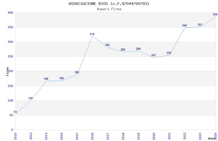 | 2016 | 319 | 10.136,19 | 31,77 | 5.031 | 88 | 20 | 1 |
