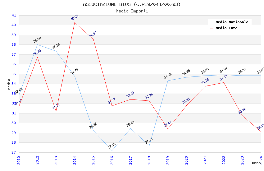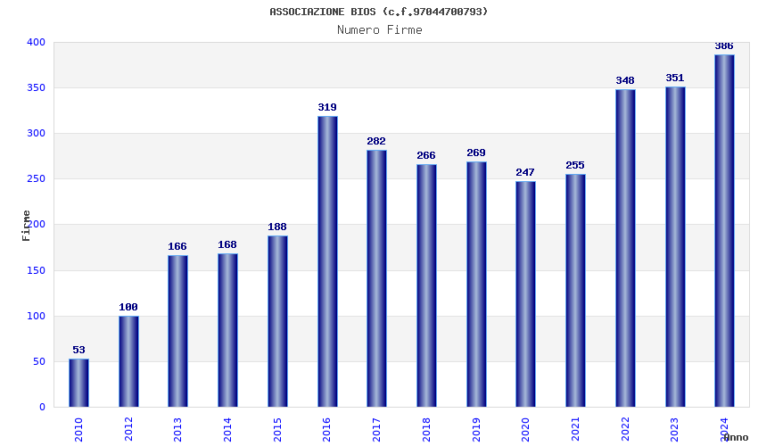 | Anno | Firme | Importi | Media | Naz. | Reg. | Prov. | Comu. |