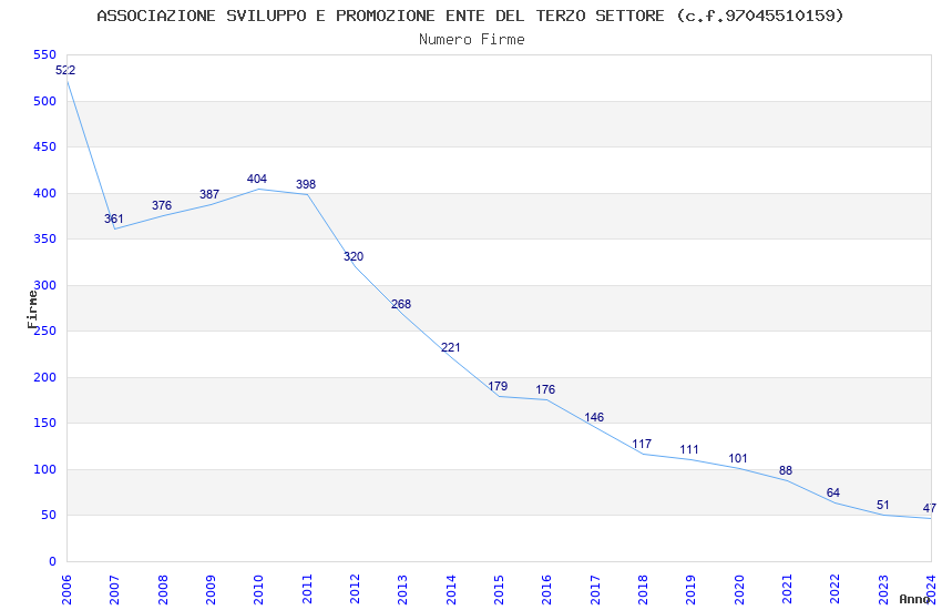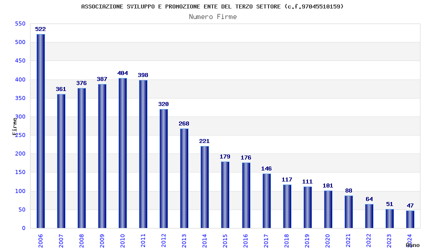 | Anno | Firme | Importi | Media | Naz. | Reg. | Prov. | Comu. |