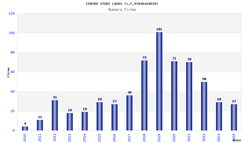 | Anno | Firme | Importi | Media | Naz. | Reg. | Prov. | Comu. |