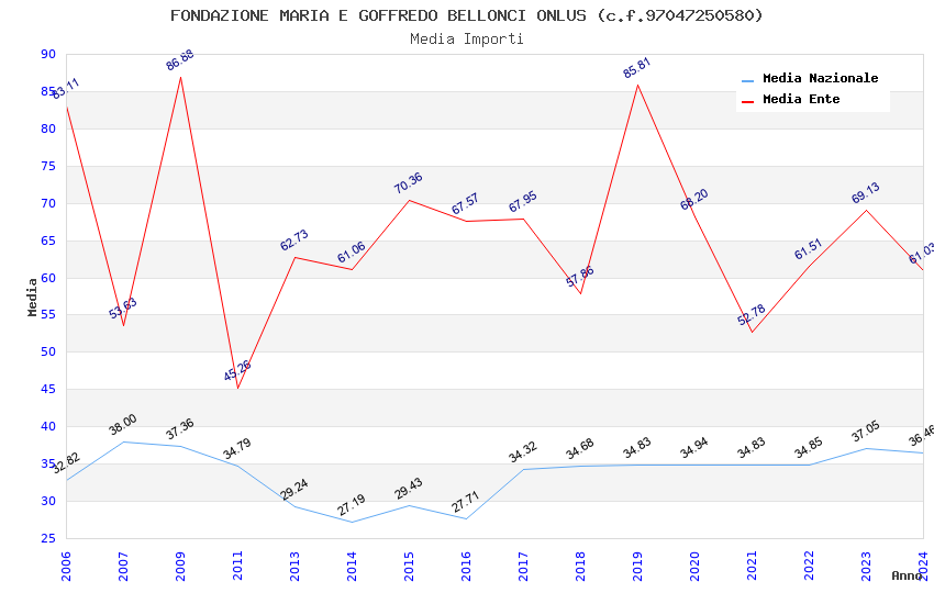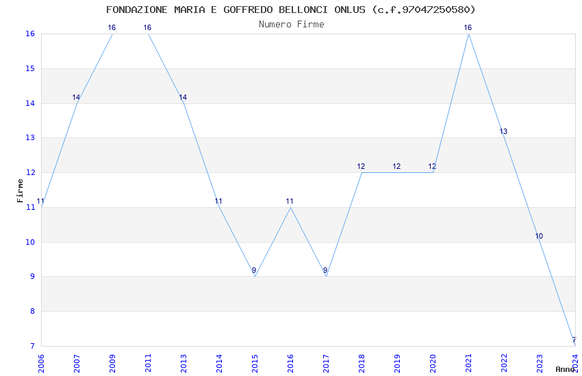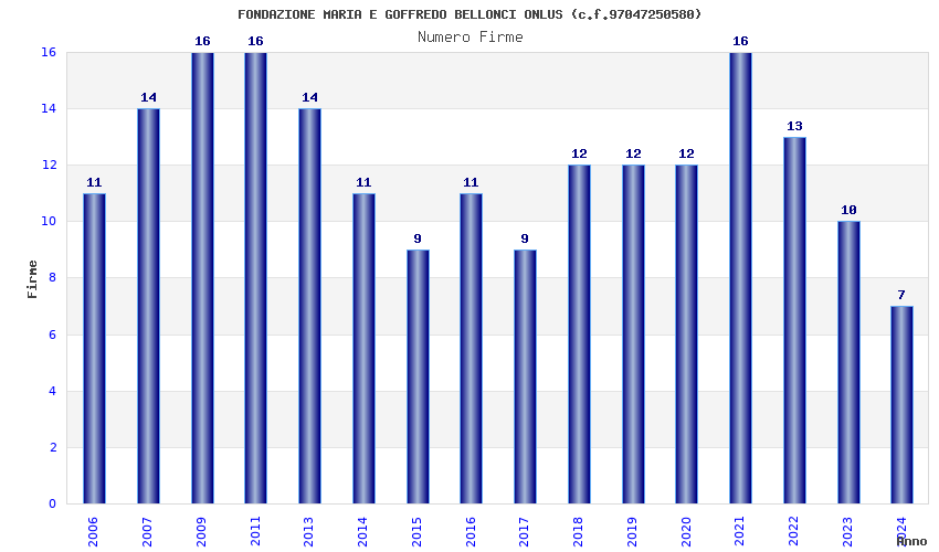 | Anno | Firme | Importi | Media | Naz. | Reg. | Prov. | Comu. |
