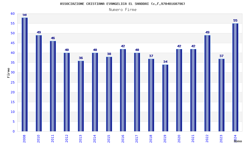 | Anno | Firme | Importi | Media | Naz. | Reg. | Prov. | Comu. |