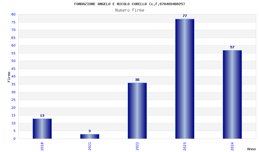 | Anno | Firme | Importi | Media | Naz. | Reg. | Prov. | Comu. |