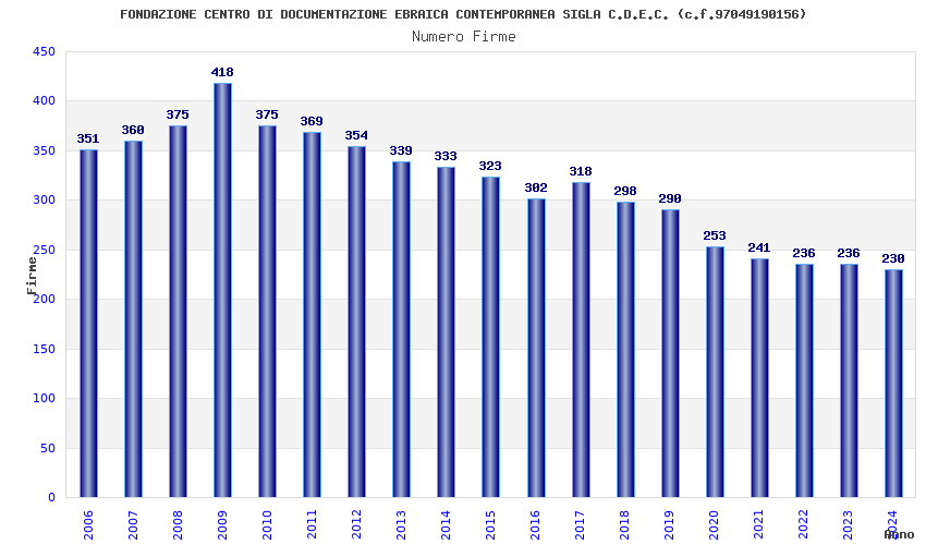 | Anno | Firme | Importi | Media | Naz. | Reg. | Prov. | Comu. |