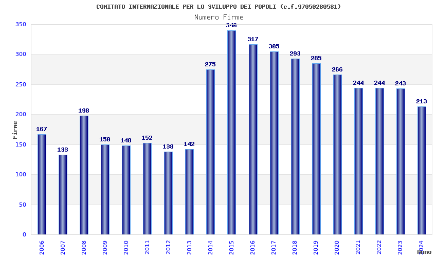 | Anno | Firme | Importi | Media | Naz. | Reg. | Prov. | Comu. |