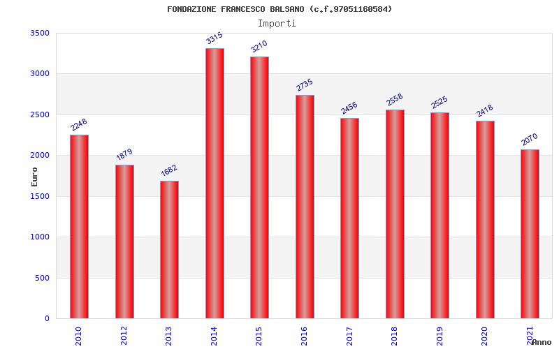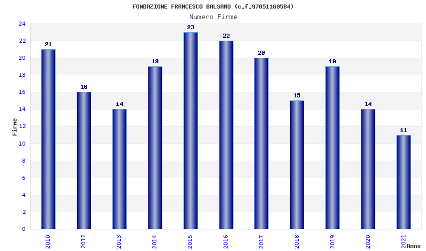 | Anno | Firme | Importi | Media | Naz. | Reg. | Prov. | Comu. |