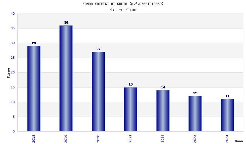 | Anno | Firme | Importi | Media | Naz. | Reg. | Prov. | Comu. |