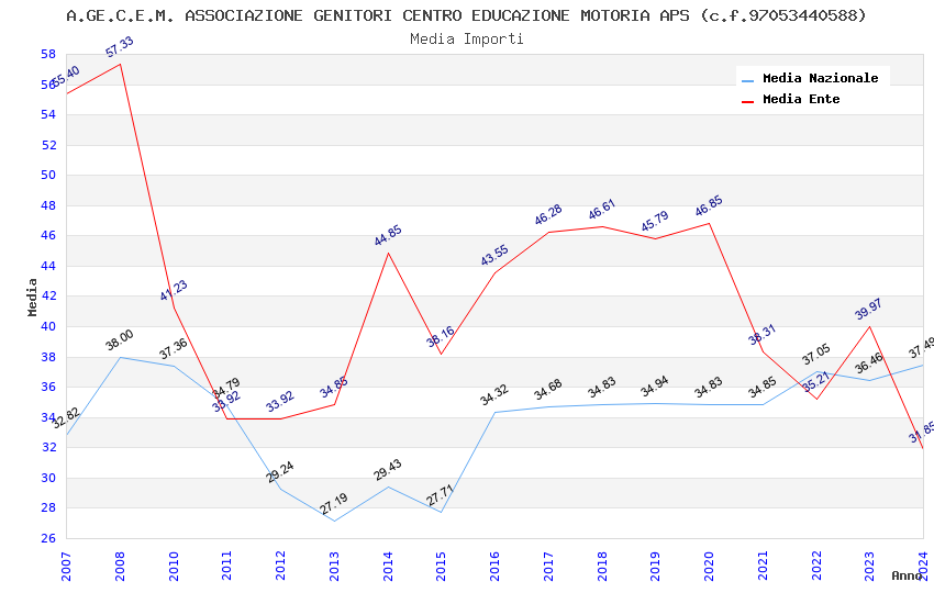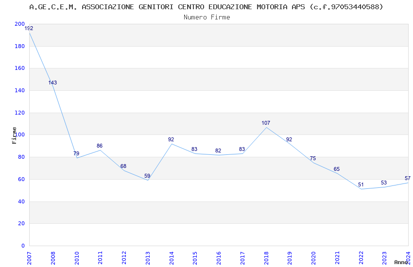 | Anno | Firme | Importi | Media | Naz. | Reg. | Prov. | Comu. |