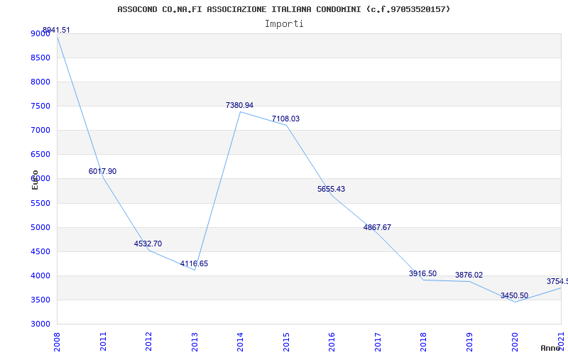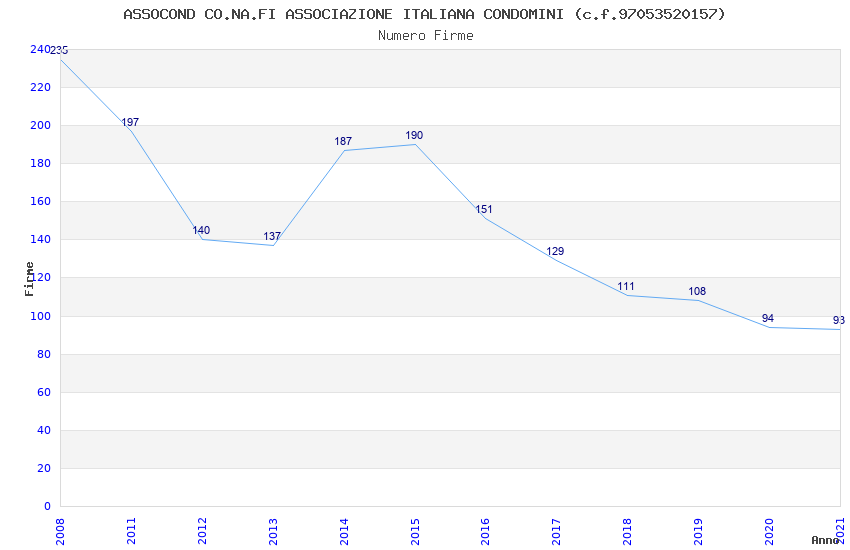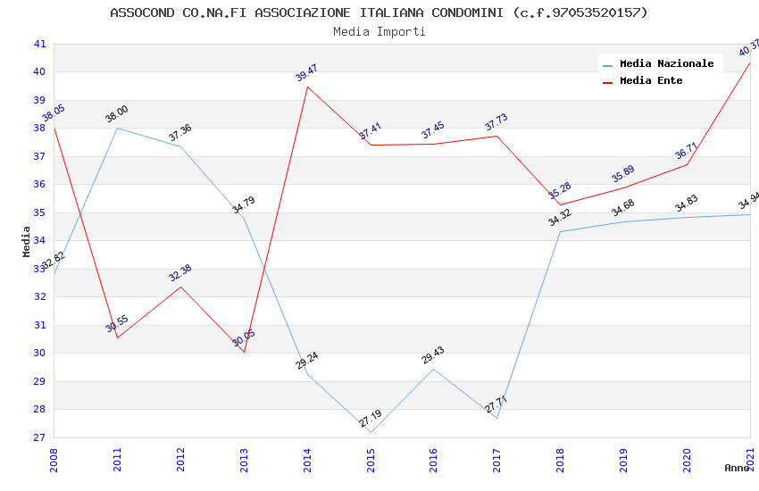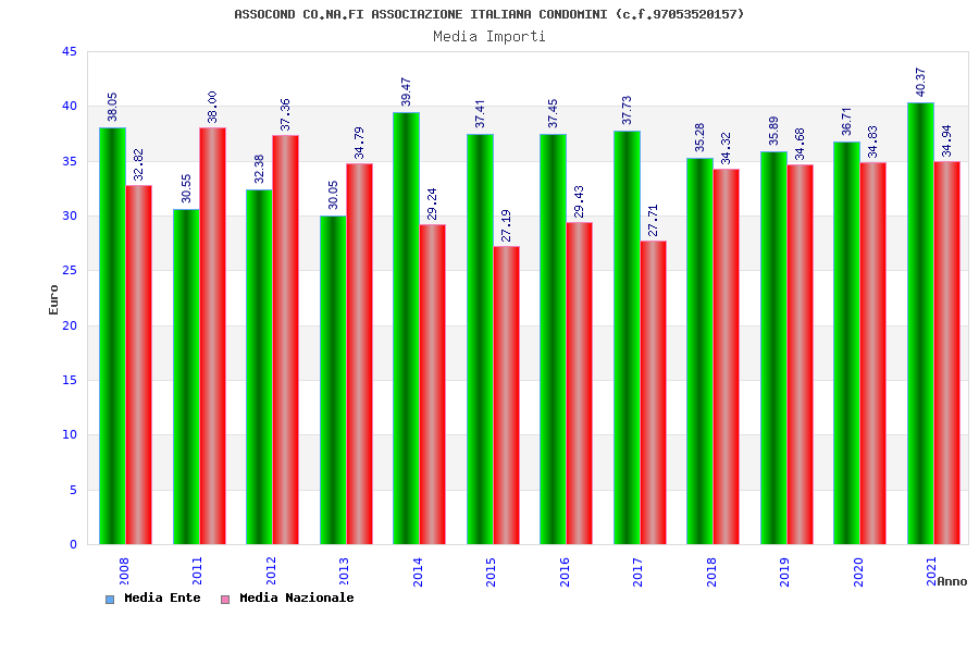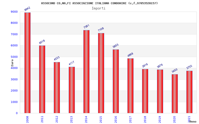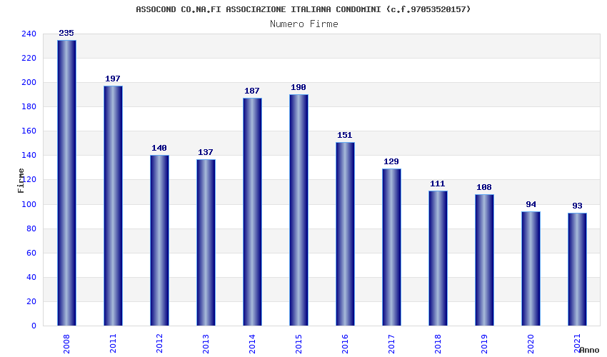 | Anno | Firme | Importi | Media | Naz. | Reg. | Prov. | Comu. |