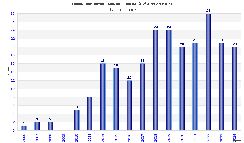| Anno | Firme | Importi | Media | Naz. | Reg. | Prov. | Comu. |