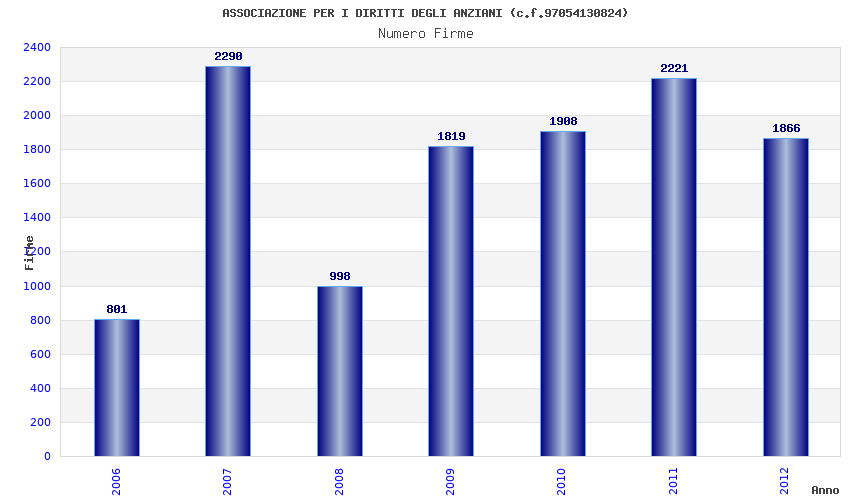 | Anno | Firme | Importi | Media | Naz. | Reg. | Prov. | Comu. |