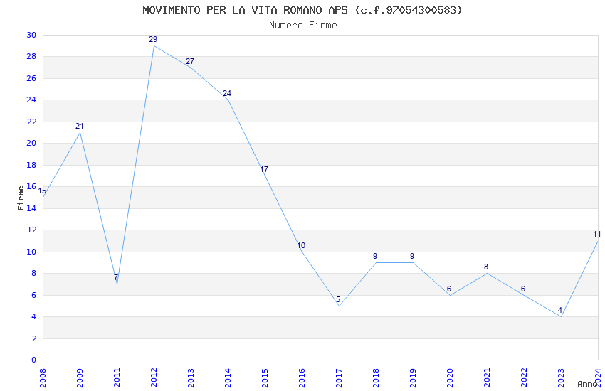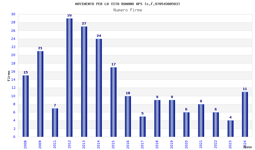 | Anno | Firme | Importi | Media | Naz. | Reg. | Prov. | Comu. |