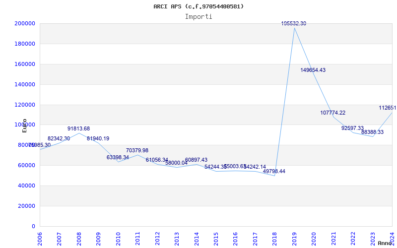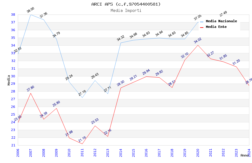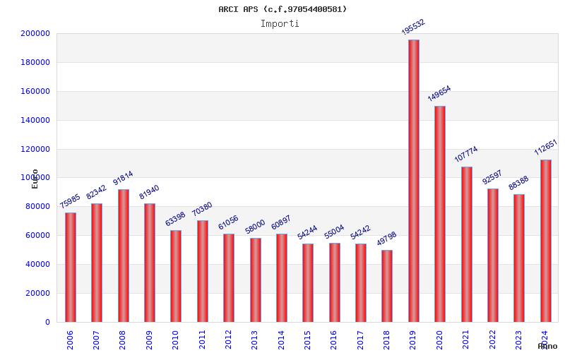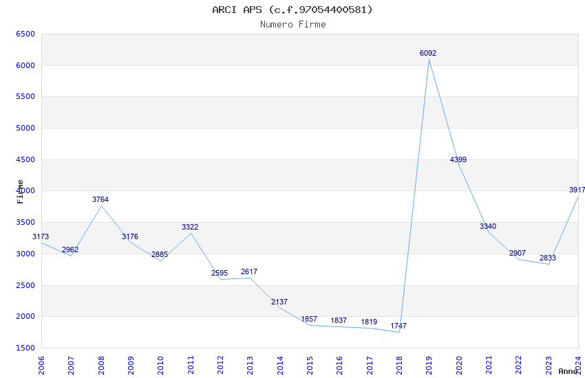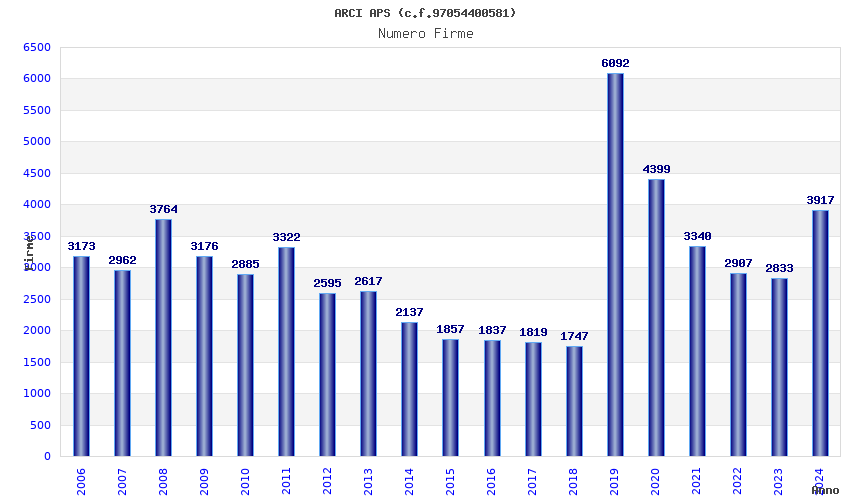 | Anno | Firme | Importi | Media | Naz. | Reg. | Prov. | Comu. |