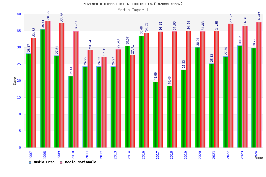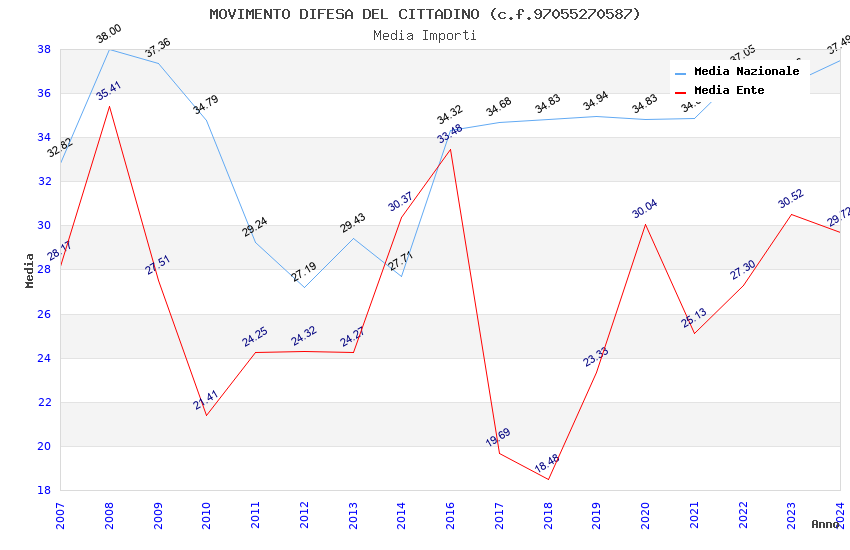 | Anno | Firme | Importi | Media | Naz. | Reg. | Prov. | Comu. |