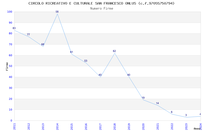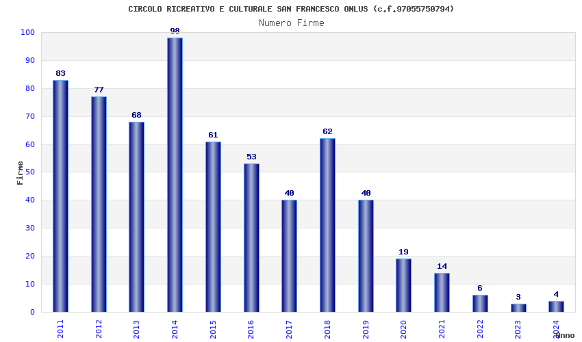 | Anno | Firme | Importi | Media | Naz. | Reg. | Prov. | Comu. |