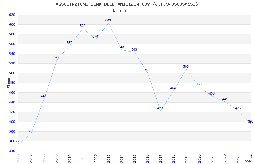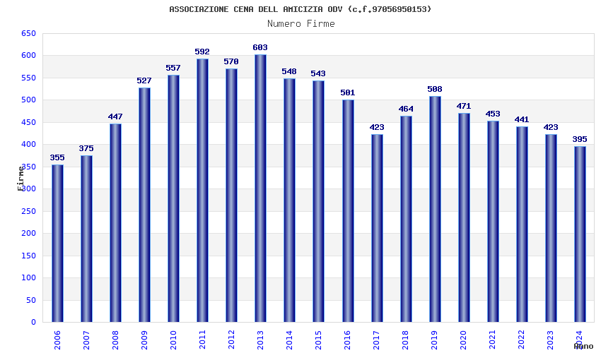 | Anno | Firme | Importi | Media | Naz. | Reg. | Prov. | Comu. |