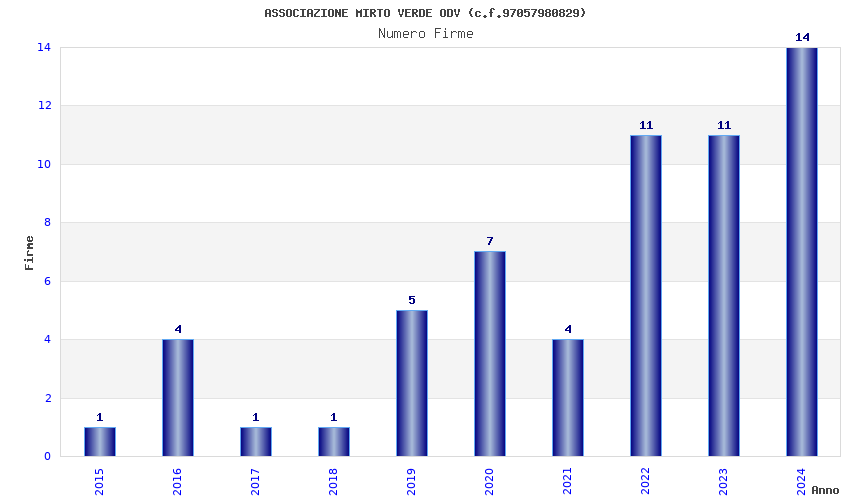| Anno | Firme | Importi | Media | Naz. | Reg. | Prov. | Comu. |