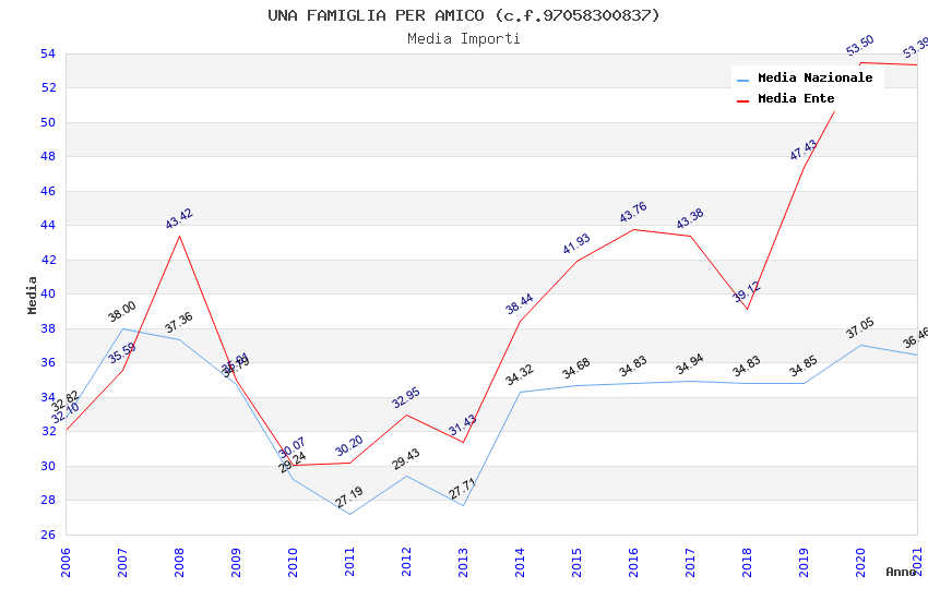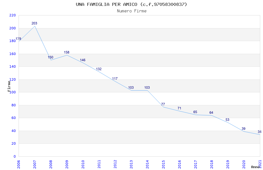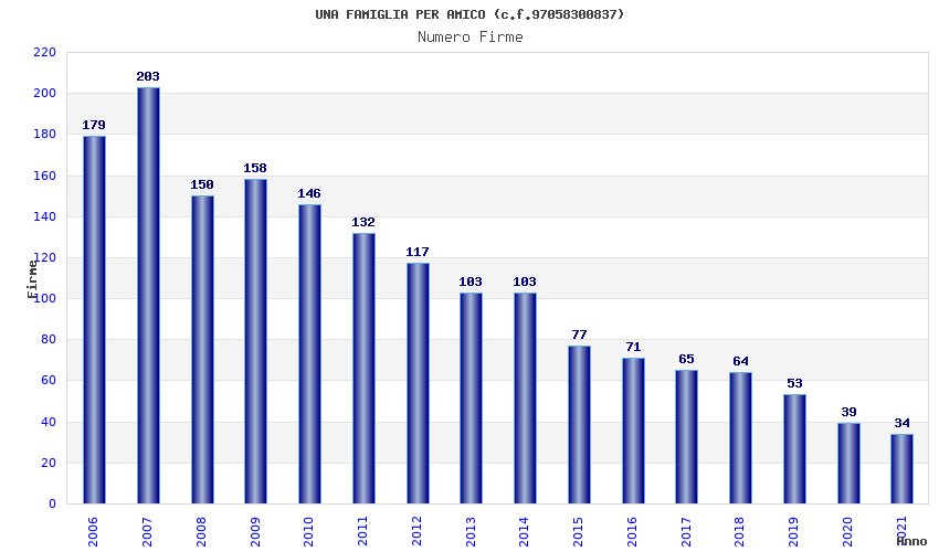 | Anno | Firme | Importi | Media | Naz. | Reg. | Prov. | Comu. |