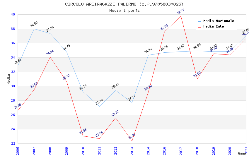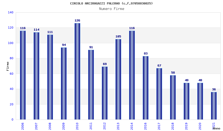 | Anno | Firme | Importi | Media | Naz. | Reg. | Prov. | Comu. |