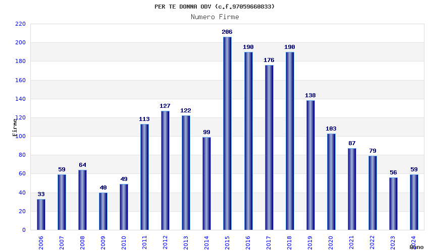 | Anno | Firme | Importi | Media | Naz. | Reg. | Prov. | Comu. |