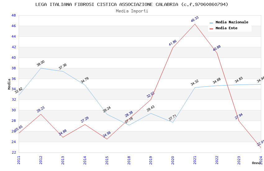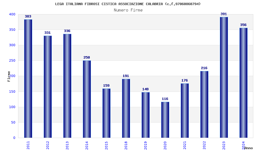 | Anno | Firme | Importi | Media | Naz. | Reg. | Prov. | Comu. |