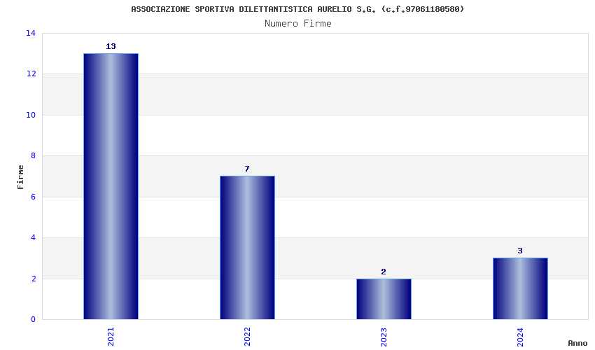| Anno | Firme | Importi | Media | Naz. | Reg. | Prov. | Comu. |