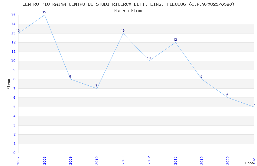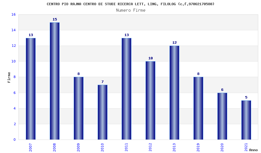 | Anno | Firme | Importi | Media | Naz. | Reg. | Prov. | Comu. |