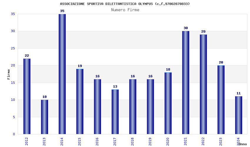 | Anno | Firme | Importi | Media | Naz. | Reg. | Prov. | Comu. |
