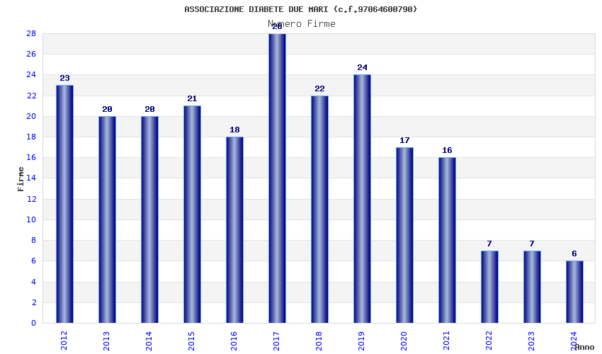 | Anno | Firme | Importi | Media | Naz. | Reg. | Prov. | Comu. |