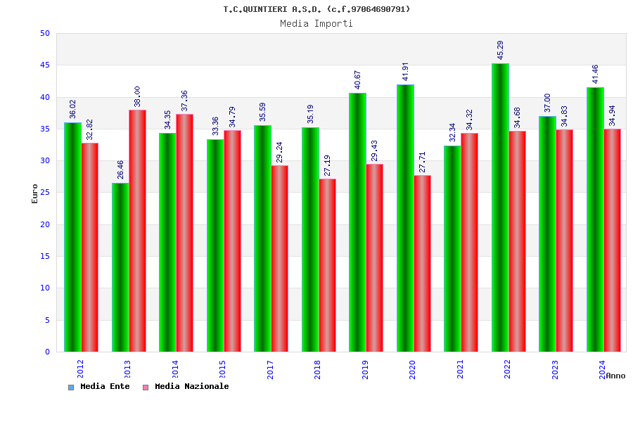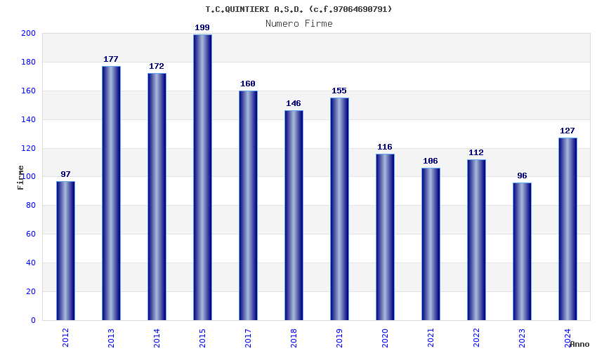 | Anno | Firme | Importi | Media | Naz. | Reg. | Prov. | Comu. |