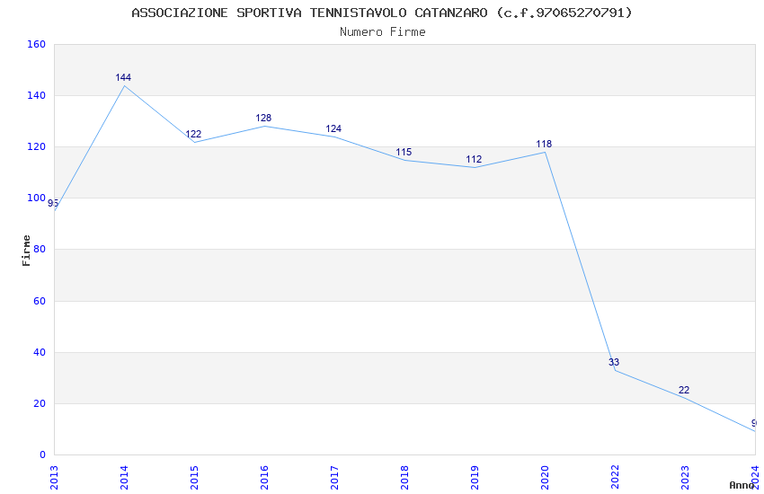 | 2014 | 144 | 6.720,22 | 46,67 | 8.078 | 169 | 38 | 19 |