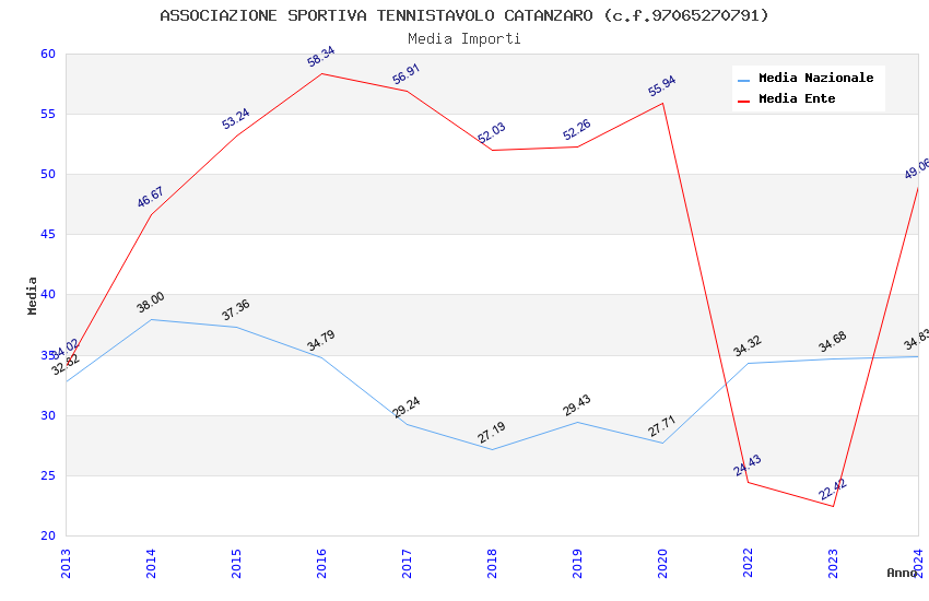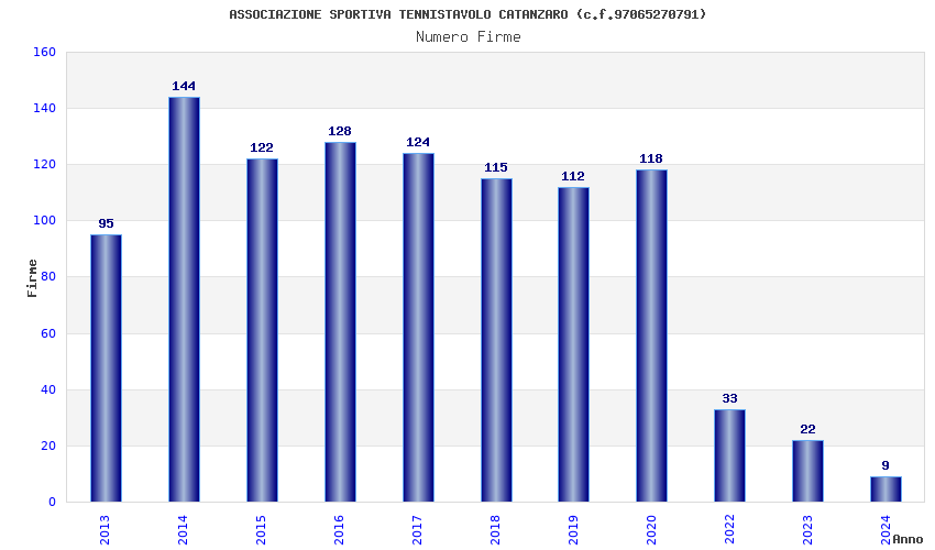 | Anno | Firme | Importi | Media | Naz. | Reg. | Prov. | Comu. |