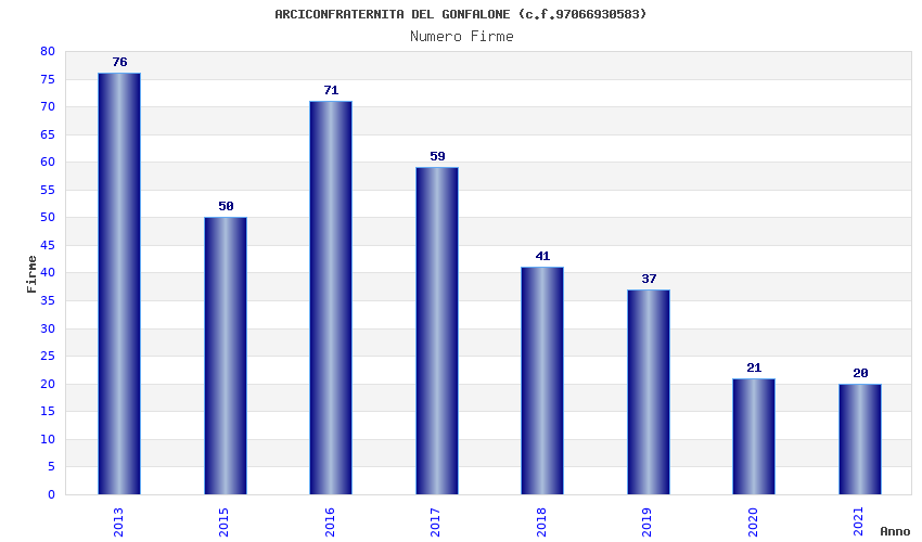 | Anno | Firme | Importi | Media | Naz. | Reg. | Prov. | Comu. |