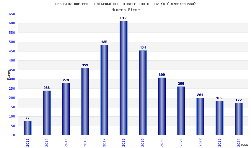 | Anno | Firme | Importi | Media | Naz. | Reg. | Prov. | Comu. |