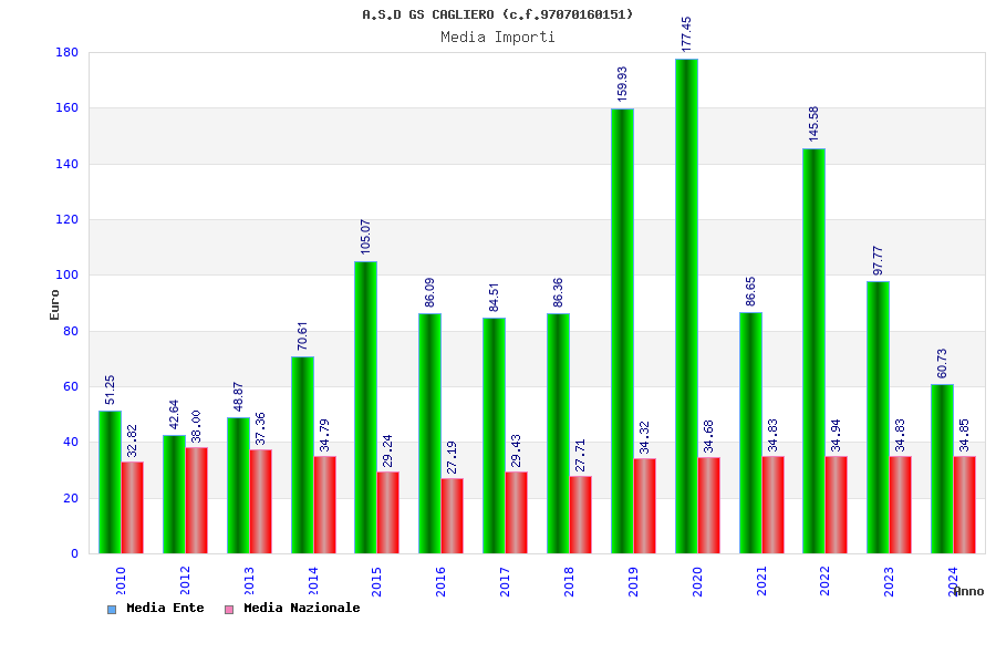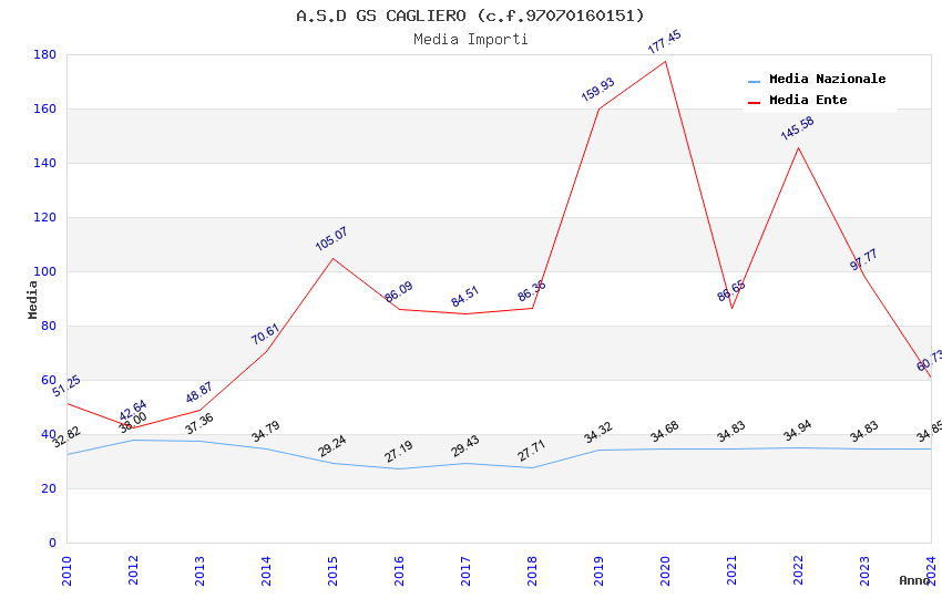 | Anno | Firme | Importi | Media | Naz. | Reg. | Prov. | Comu. |