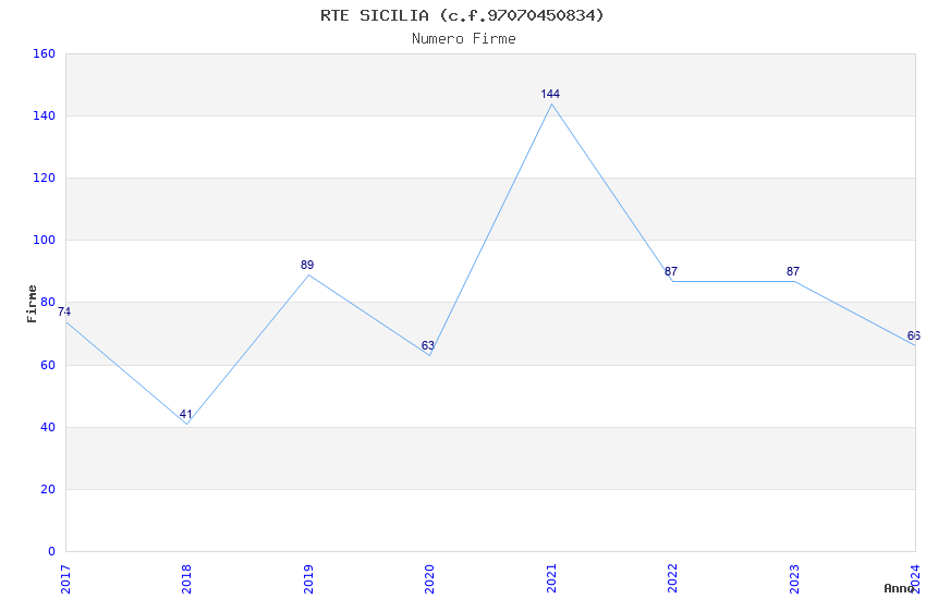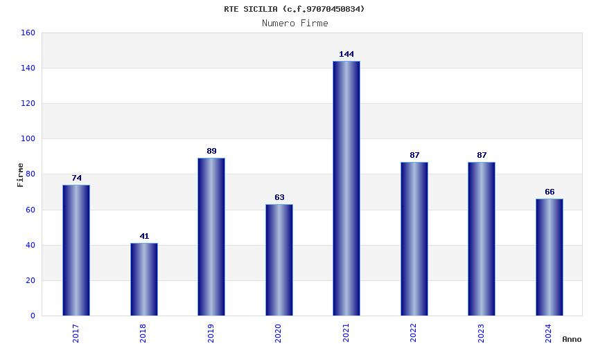| Anno | Firme | Importi | Media | Naz. | Reg. | Prov. | Comu. |
