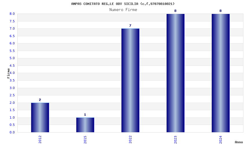 | Anno | Firme | Importi | Media | Naz. | Reg. | Prov. | Comu. |