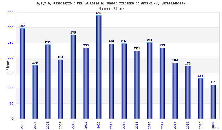 | Anno | Firme | Importi | Media | Naz. | Reg. | Prov. | Comu. |