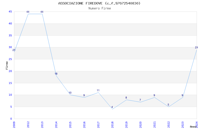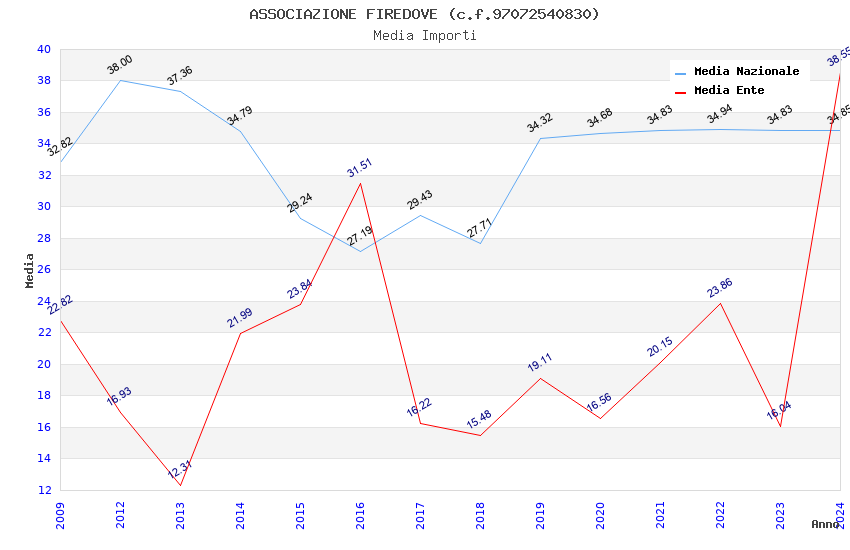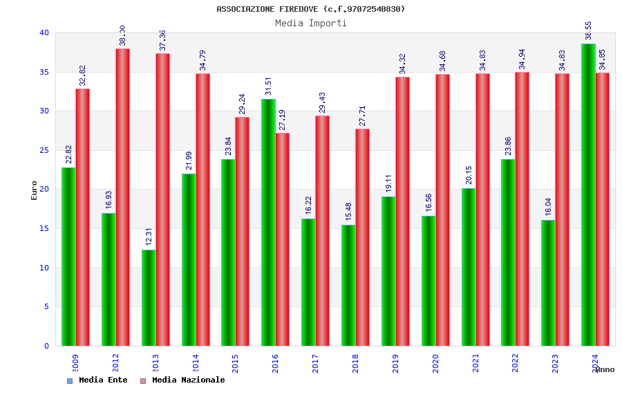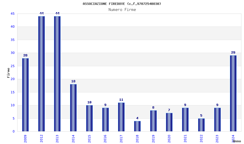 | Anno | Firme | Importi | Media | Naz. | Reg. | Prov. | Comu. |