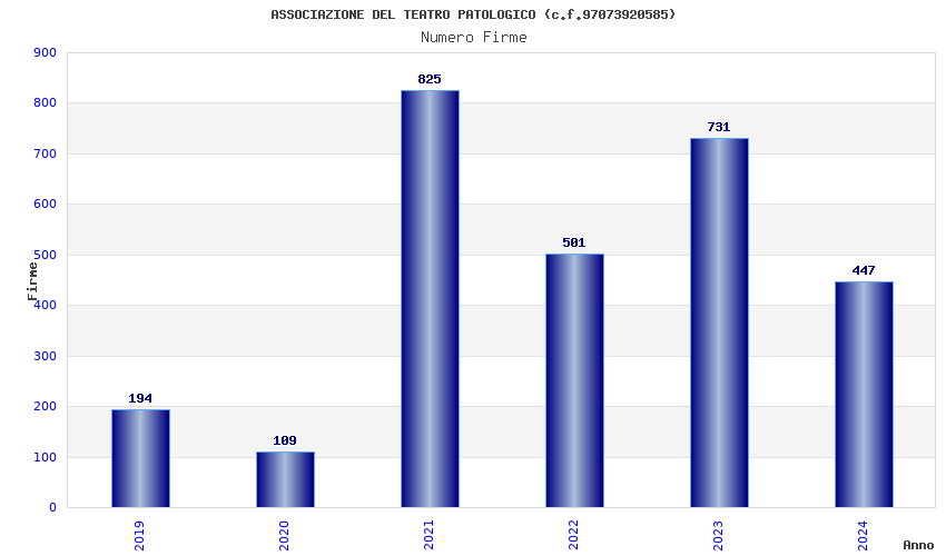 | Anno | Firme | Importi | Media | Naz. | Reg. | Prov. | Comu. |