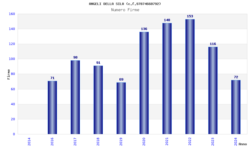 | Anno | Firme | Importi | Media | Naz. | Reg. | Prov. | Comu. |