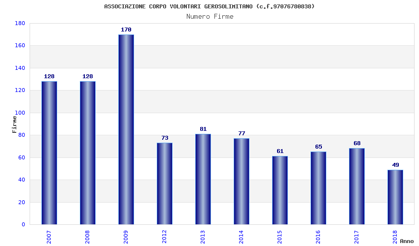 | Anno | Firme | Importi | Media | Naz. | Reg. | Prov. | Comu. |
