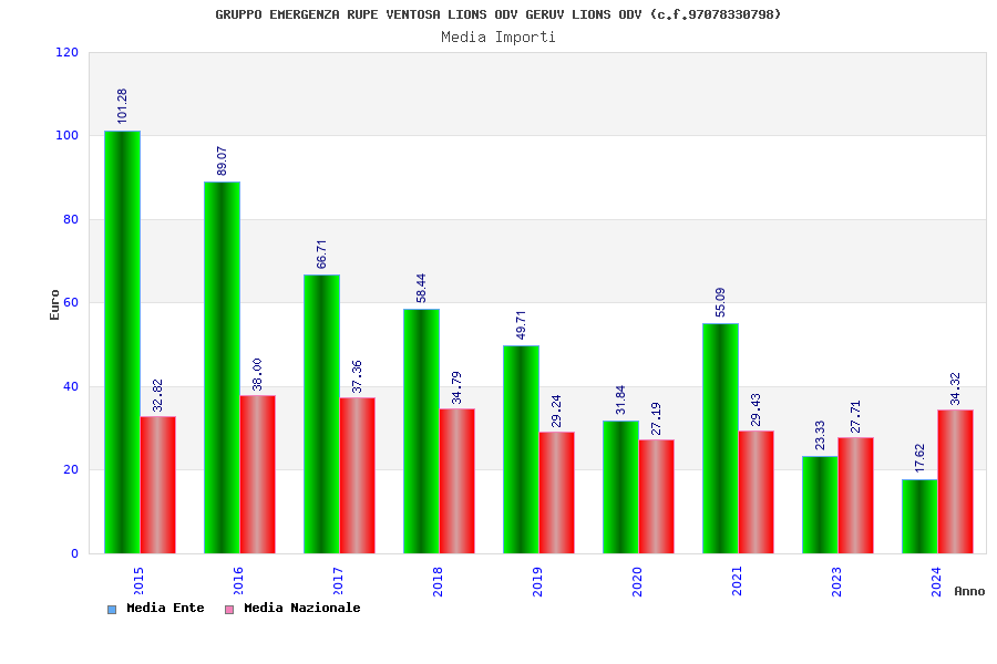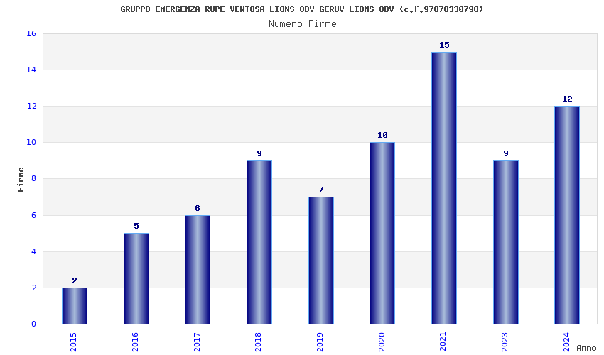 | Anno | Firme | Importi | Media | Naz. | Reg. | Prov. | Comu. |